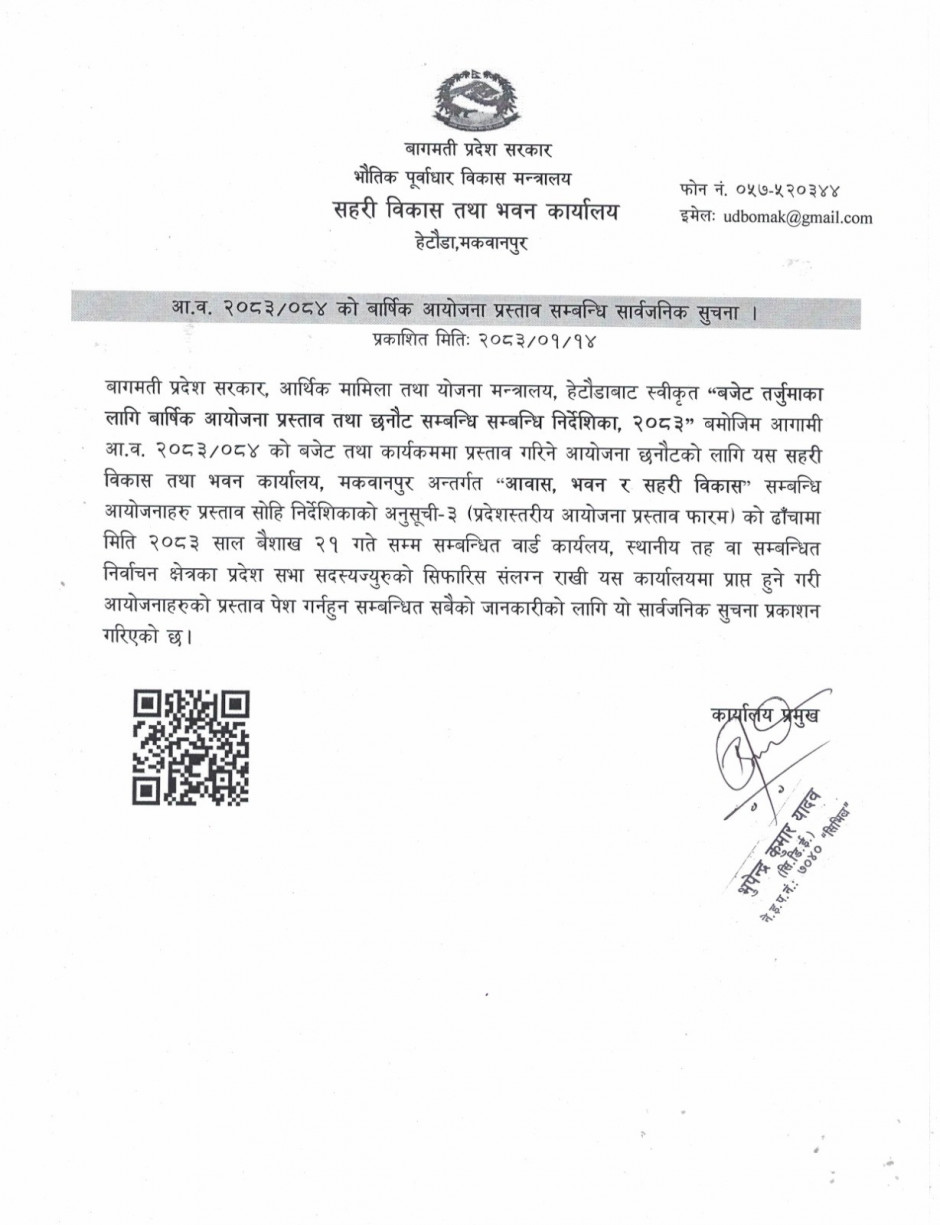 आ.व.2083/84 को बार्षिक आयोजना प्रस्ताव सम्बन्धी सार्वजनिक सूचना।