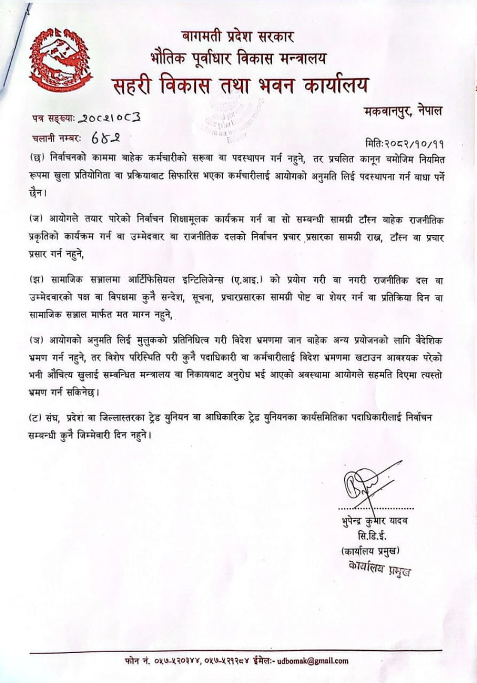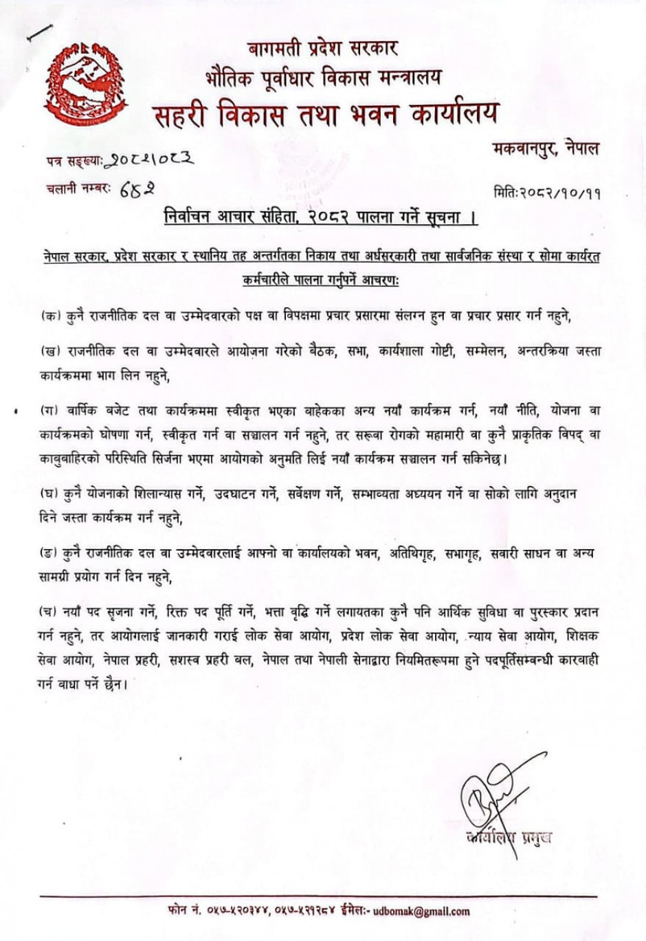निर्वाचान आचार संहिता, 2082 पलना गर्ने सूचना।